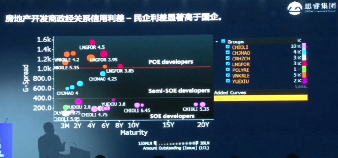 一是国资背景的开发商,像华润质量非常好,越秀现金流很强; 半国字背景比如中海外;龙湖是民企,民企、私企和我们国资背景开发商的信用利差宽度,非常宽。